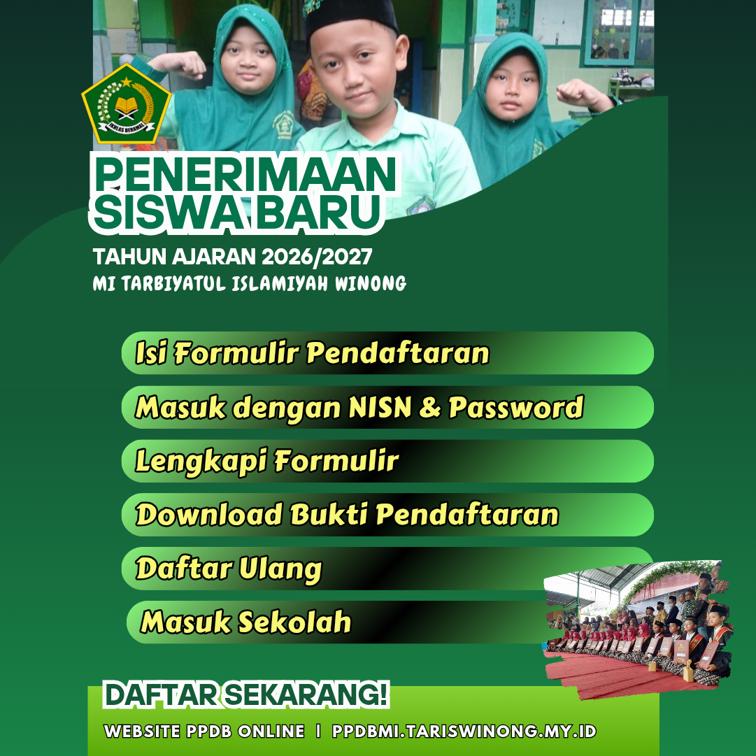 Aplikasi Penerimaan Peserta didik baru Tahun Pelajaran 2026/2027 MI TARBIYATUL ISLAMIYAH WINONG.
